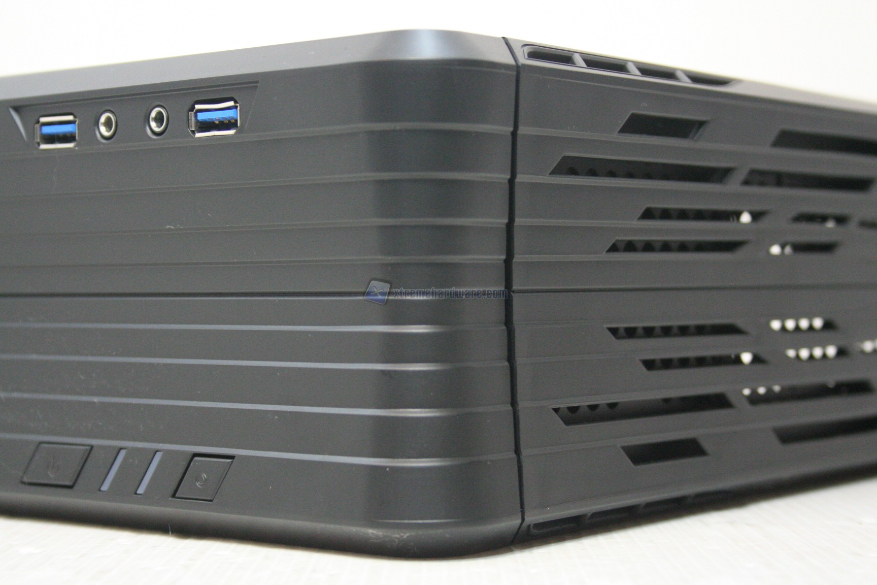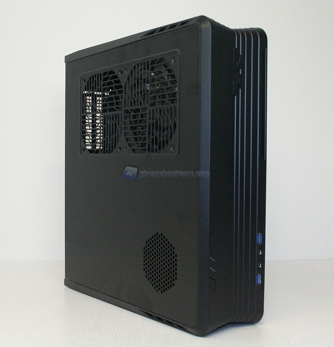 La versione che abbiamo ricevuto è l’unica in commercio, quindi integralmente nera. Il telaio è in acciaio ma il frontalino, e le cover laterali, sono in plastica dura. Sicuramente questo può essere un punto a sfavore, ma d’altronde al fine di contenere i costi di produzione è una misura necessaria. Se così non fosse stato, ci saremmo trovati davanti ad un prodotto ben più elitario in termini economici, similmente alle serie SilverStone Fortress. L’impressione iniziale è un misto di stupore e de-ja-vu, poiché questa tipologia di case in sostanza è nota nel settore mini-ITX. Sono appunto le soluzioni HTPC Slim desktop, solo che a differenza di queste ultime ci sono molti elementi diversi: