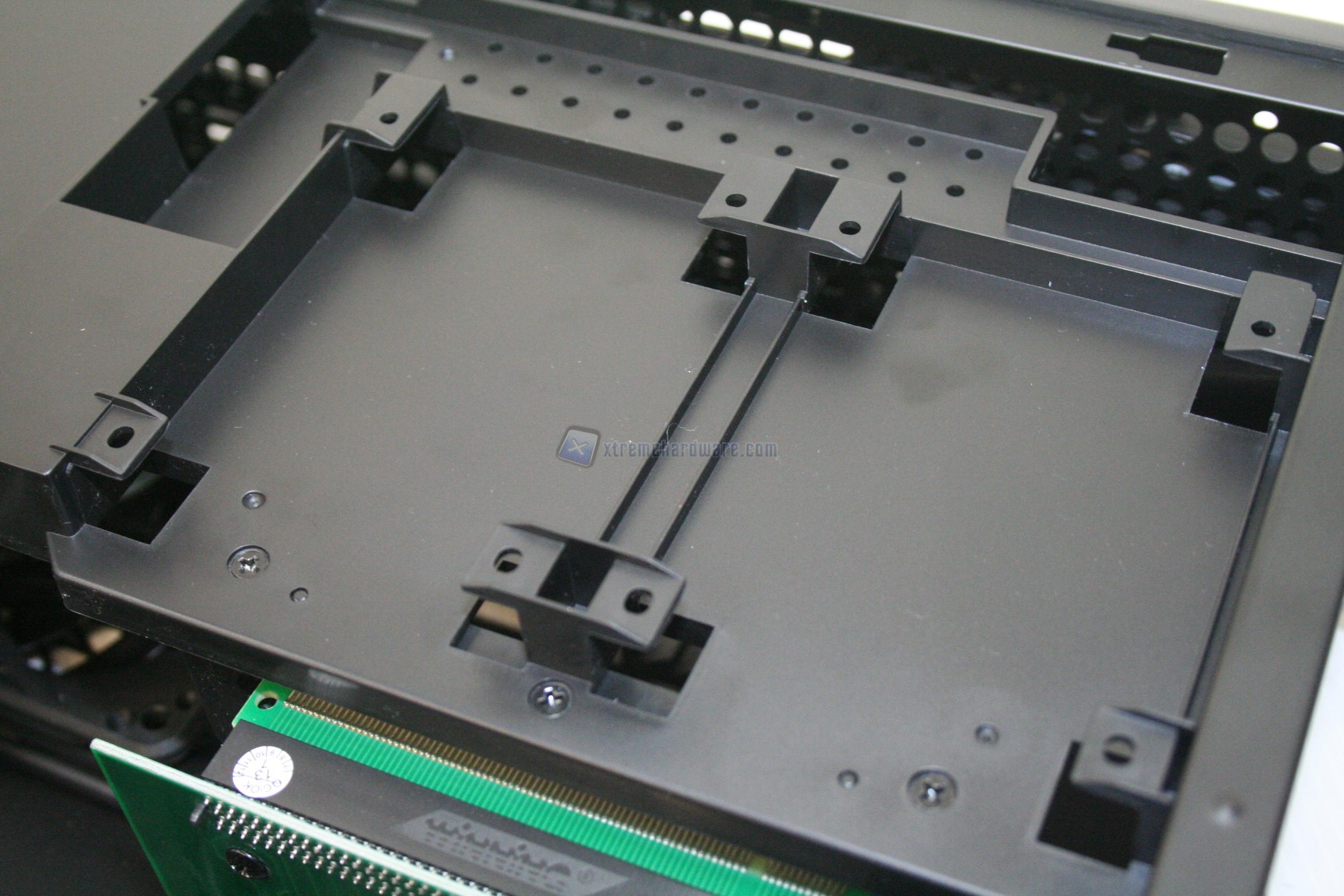 Il piatto della scheda madre è interamente in acciaio, ed ovviamente oltre a non essere removibile è compatibile solo con motherboard Mini-ITX e Mini-DTX. Abbiamo avuto una leggera difficoltà nell’installare la scehda madre con il cage dell’alimentatore inserito, ed infatti SivlerStone consiglia di farlo senza. Ricordatevi di questo particolare, onde evitare problemi. Inutile far presente che non è presente nessuna paratia posteriore, come non sono presenti fori passacavi o guaine antitaglio. Non è ovviamente presente un foro posteriore per l’installazione di backplate, per dissipatori aftermarket della CPU, quindi qualora voleste smontare il dissipatore, se non fosse Push-Pin, dovreste smontare la scheda madre.