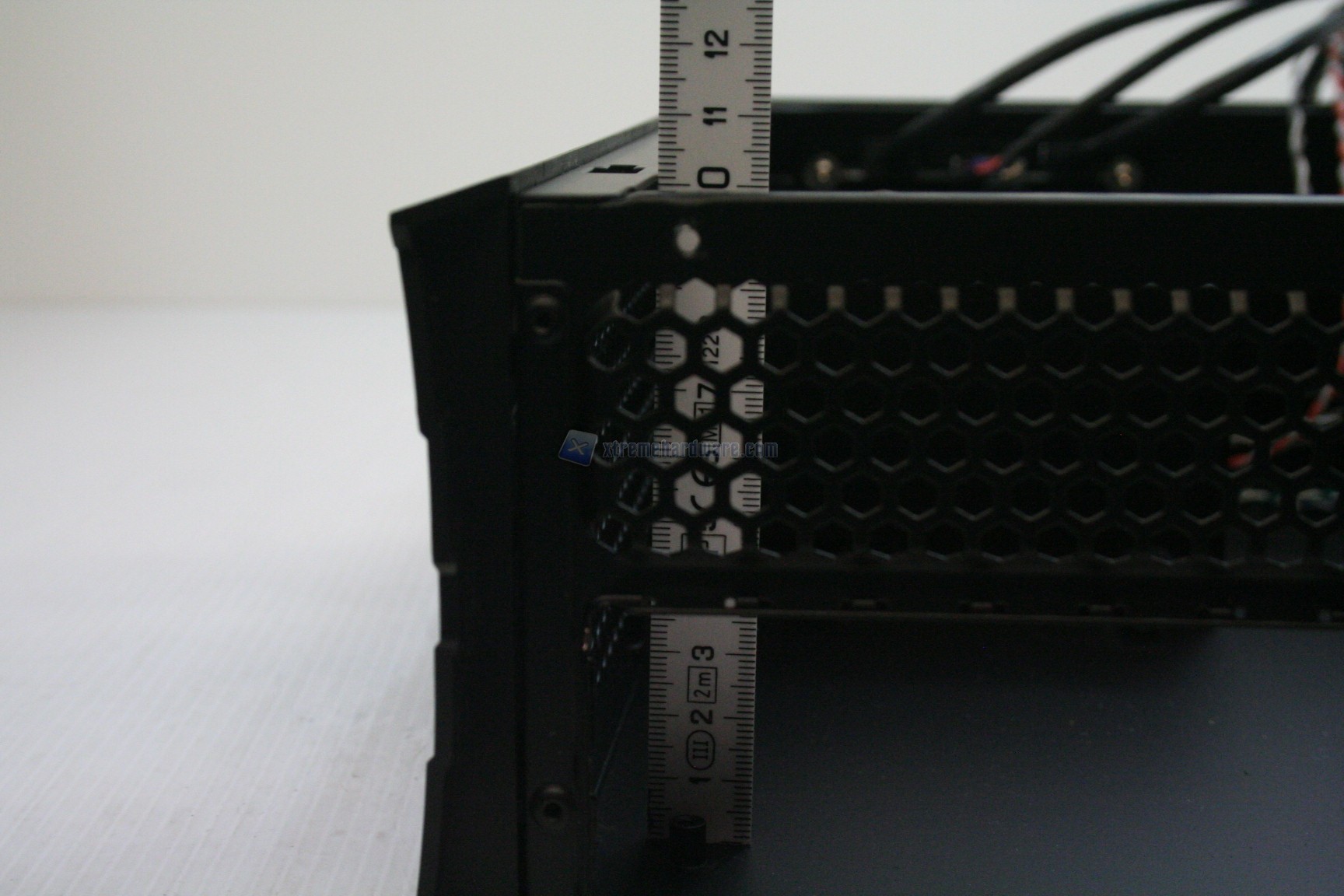 ISOLAMENTO TERMICO PSU: similmente a quanto riscontrato in soluzioni full tower l’organizzazione dei flussi non permetterà l’immissione di aria calda all’interno del cabinet quindi isolerà termicamente lo scompartimento anteriore. Tale scelta costruttiva incide parzialmente sulle performance di raffreddamento, in quanto limiterà l’areazione frontalmente.
