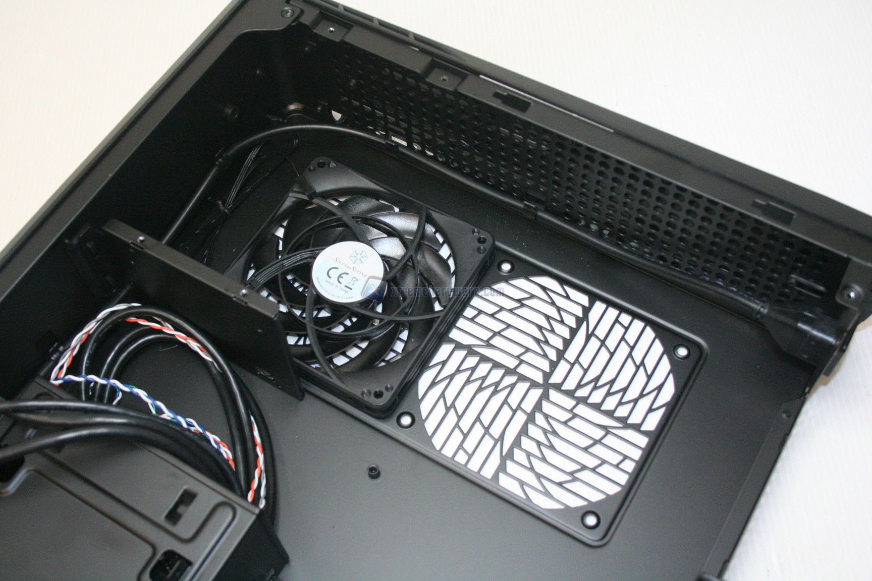 Il posizionamento dell’alimentatore è sui generis, laterale in un bay preinstallato ma removibile tramite quattro viti M3. È posto sotto all’hard disk da 3.5” ma non c’è nessun problema di temperature perché è isolato a livello termico; è infatti presente una feritoia laterale e l’aria viene espulsa posteriormente (frasse soggetta ad interpretazioni, a causa dei diversi posizionamenti). La lunghezza massima consentita è pari all’alimentatore proprietario SilverStone SFX 450W SST-ST45SF-G. Consigliamo di non andare oltre questo format factor, anche perché difficilmente sarà possibile. Il cablaggio, qualora fossero utilizzati i connettori standard, è discreto, se fossero utilizzati i PP05-E invece sarebbe molto più facile.